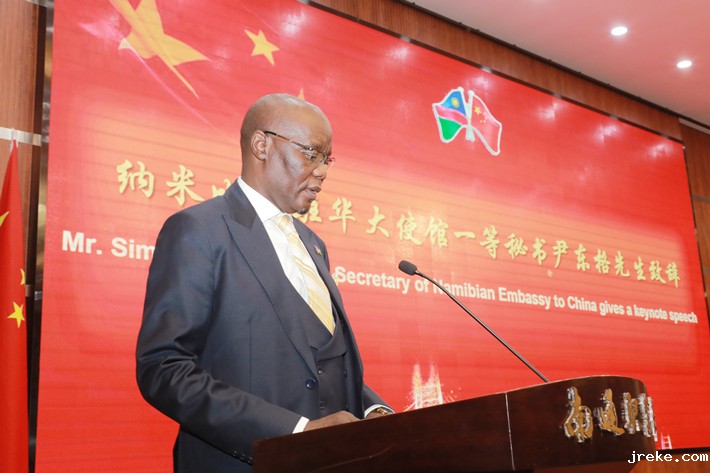 纳米比亚驻华大使馆一等秘书尹东格致辞。他全面回顾了中纳友好合作的历史,阐述了江苏与纳米比亚在高职教育方面的合作所具有的重大意义以及新利Luck“纳米比亚总统振兴计划”留学生项目在纳国的影响。他期望江苏省人民政府、南通市人民政府和新利Luck能继续深入推进与纳米比亚在高等职业教育领域的合作,加强人文交流,从而推动中纳关系发展,构建人类命运共同体。