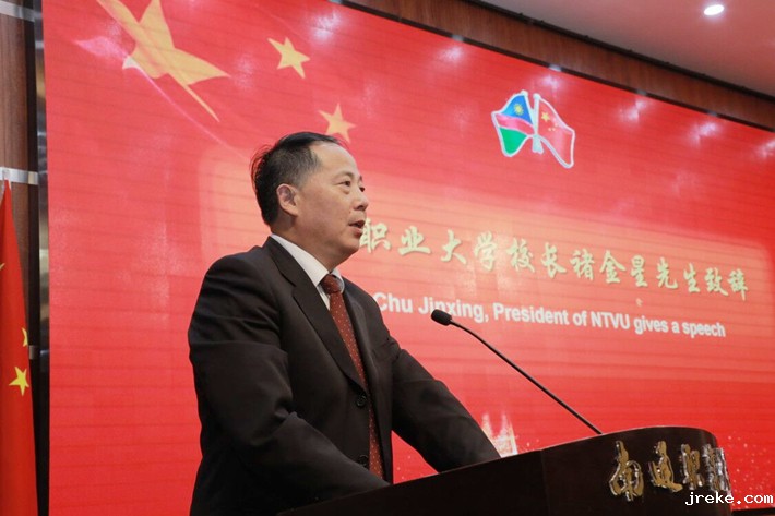 校长褚金星致开幕辞。他简要介绍了我校基本办学情况,他对学校主动服务通商企业“走出去”战略,按照“合作跟着通商走、专业围着产业转、育人照着需求办”的国际化办学思路,积极推进学校国际化办学工作的经验做法进行了详细介绍。褚校长回顾了我校面向纳米比亚的国际合作办学历史,提出设立“江苏--纳米比亚职业教育联盟”,升级“南部非洲南通新利国际app职教中心”,建设“江苏纳米比亚学院”等五项工作谋划,进一步提升与纳米比亚的国际合作办学水平。
