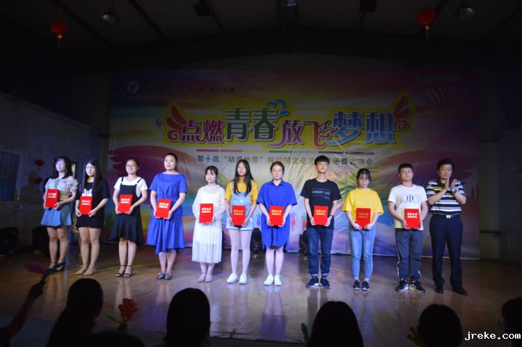 晚会开幕前,我院黄勇院长作了热情洋溢的致辞,宣布海门学院校园文化艺术节闭幕式暨颁奖晚会正式开始。晚会在开场舞《失恋阵线联盟》中拉开帷幕,“人间的河映着天上的月,眼前的人唱着离人的歌”歌伴舞《离人愁》,抒发了即将回迁校本部的学生们,在作别培养他们一年的学院老师们时的万千离愁;舞蹈串烧《从古至今》极具创意,多彩的舞姿充分展示了学生的青春朝气;相声《史记新说》幽默风趣,抖出的“包袱”不断引来阵阵笑声,活跃了现场气氛,为晚会增添了乐趣;现代舞《BBoom BBoom》和中国舞《秀色》诠释了舞蹈的魅力,展现了我院学子的青春活力;小品《毕业作品》演绎了一群“戏精学院”的戏精们用独具个性的表演形式诠释了自己的毕业作品;中国功夫舞蹈《少林英雄》由特邀小嘉宾和学生们共同表演,赢得了台下观众的一片喝彩,将晚会的气氛推向了高潮;诗歌朗诵《破芽》吐露了学生心中潜藏的丰富情感,引起了台下同学们的广泛共鸣。晚会在《我的未来不是梦》的大合唱中华彩落幕。整场晚会共有10个节目,历时2个小时。节目演出期间,还举行了颁奖仪式,领导和嘉宾分别为先进集体和个人颁奖。