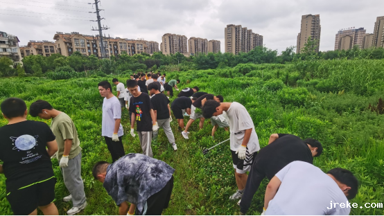 学院志愿者们发扬不怕脏、不怕累的精神,团结协作将杂草拔除并聚集成堆,然后集中进行处理。