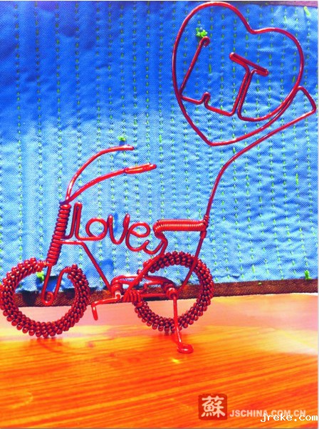 那么,这群学生究竟在网上售卖什么呢?见到了南通新利国际app这支以“低碳、创意”著称的小分队之后,谜底终于揭晓。其中,在“点击手工创意工作室”担任技术总监一职的大一新生朱勇忠,现场用他的巧手“说话”。在不到一个钟头的时间内,成本价约1.9元的漆包铝线“摇身一变”成了创意无限的自行车陈列品,不论是摆在家里或是办公室,都帅气十足。