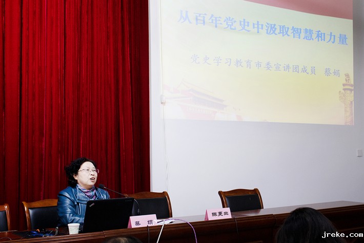 蔡娟教授的讲座以《从百年党史中汲取智慧和力量》为题,从“党史学习教育的重大意义、重温百年大党的光辉历程、感悟中国创造的伟大奇迹、总结百年大党的历史经验、务求党史学习教育的实效”等五个方面展开。讲座主题鲜明、内容丰富,深入浅出地讲明了中国共产党、中国特色社会主义道路被历史选择的必然性,让学院全体教职工在党史鲜活的故事里感悟初心、汲取力量。