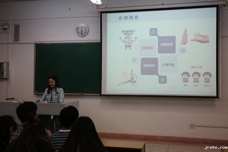 朱老师以PPT和演讲形式向同学们介绍食品药品安全的相关常识,一共讲了三部分内容。第一部分:宣讲背景。南通市正在创建国家食品安全示范城市,力争通过两年时间,使食品安全治理水平得到较大提升,全力维护通城百姓舌尖上的安全。作为新利国际app的学生,有觉悟也有义务为我们南通创建国家食品安全示范城市贡献自己的力量,努力做食品药品安全知识宣传的“主人翁”、“播种者”,而不是“局外人”、“坐等者”。第二部分:合理膳食。在日常生活中,合理膳食是健康的第一基石。朱老师通过一些实验数据和案例告诉同学们合理膳食的重要性。在平时的饮食中要严格要求自己,吃的新鲜点、干净点、素一点、淡一点。第三部分:合理用药。合理用药关系每位用药者的生命健康。合理用药的核心—安全、有效、经济。朱老师先后介绍了合理用药的十大原则,如优先使用基本药物、阅读了解用药说明、处方用药应嘱医嘱、关注药物不良反应等,让同学们了解到合理用药意义重大。